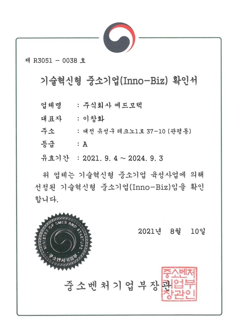 기술혁신형 중소기업(Inno-Biz) 확인서_제R3051-0038호 페이지 정보 작성자 관리자 작성일 24-06-13 14:21 조회 942회 댓글 0건 본문 . 이전글패밀리기업인증서_한국핵융합에너지연구원 다음글소재부품장비전문기업확인서_제34263호 목록 댓글목록 0 댓글목록 등록된 댓글이 없습니다.